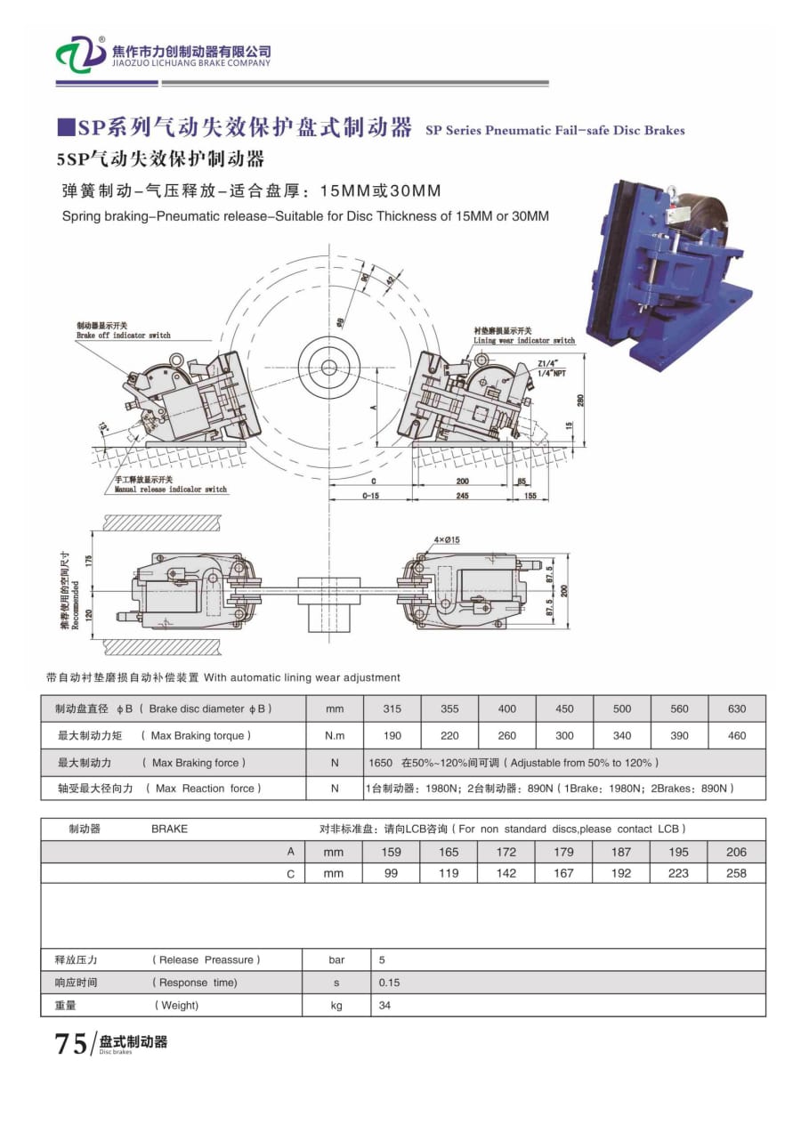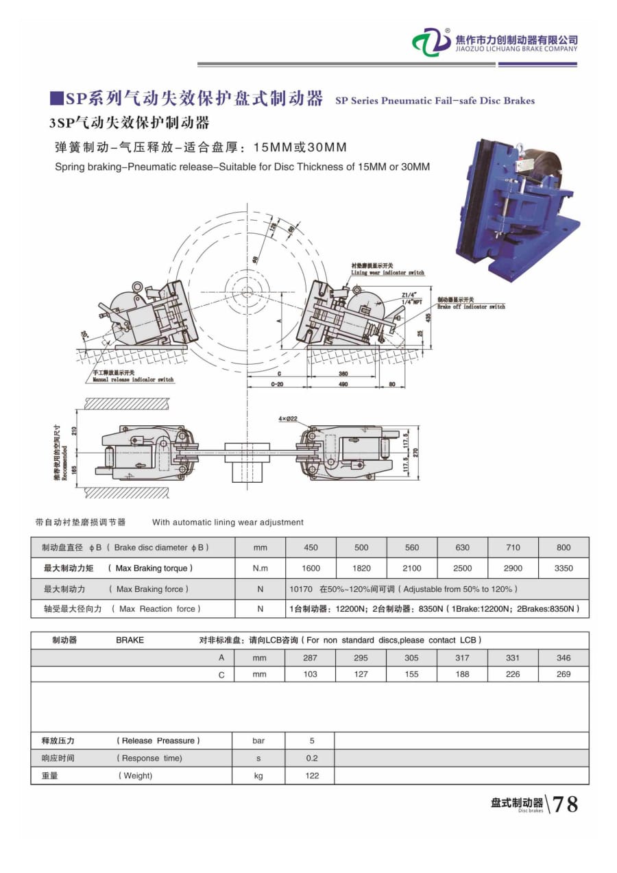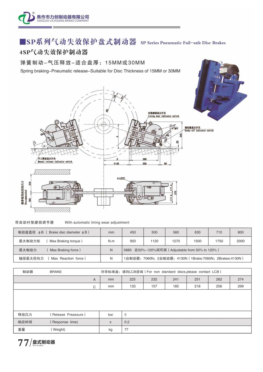 SP系列氣動(dòng)失效保護(hù)盤(pán)式制動(dòng)器